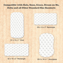 Baby Bassinet Sheet Set for Boy and Girl, 2 Pack Organic Cotton Universal Fitted Bedding Cover for Oval, Hourglass & Rectangle Bassinet Mattress, Fitted Sheets Size 32 x 16 x 4 Inches