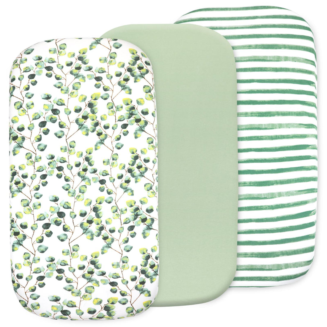 Baby Bassinet Sheet Set for Boy and Girl, 3 Pack Organic Cotton Universal Fitted Bedding Cover for Oval, Hourglass & Rectangle Bassinet Mattress, Fitted Sheets Size 32 x 16 x 4 Inches