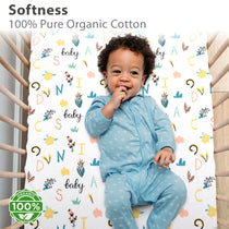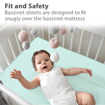 2 Pack Bedside Sleeper Bassinet Fitted Sheets, Organic Cotton, 33x20x4 Inches, Compatible with Pads Size Between 17-21 in Width, 29-33 in Length, and 1.5-4 in Thick