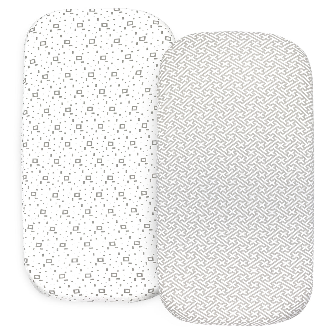 2 Pack Bedside Sleeper Bassinet Fitted Sheets, Organic Cotton, 33x20x4 Inches, Compatible with Pads Size Between 17-21 in Width, 29-33 in Length, and 1.5-4 in Thick