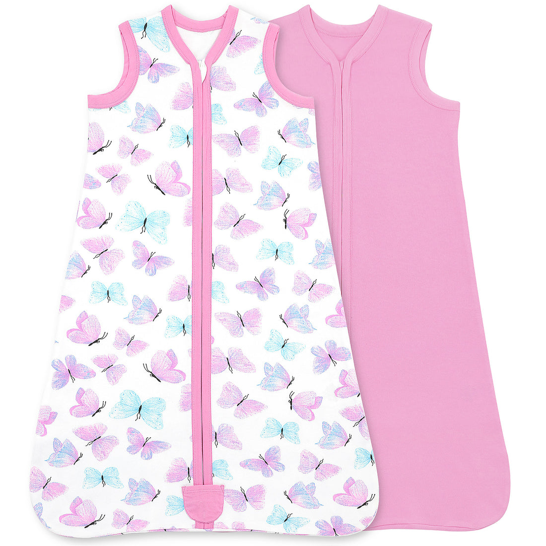Bublo Baby Wearable Blanket, Cotton Sleep Sacks for 12-18 Months, 2 Pack Girls Sleeping Bag Sack, 2-Way Zipper, 0.5 Tog Breathable Cotton